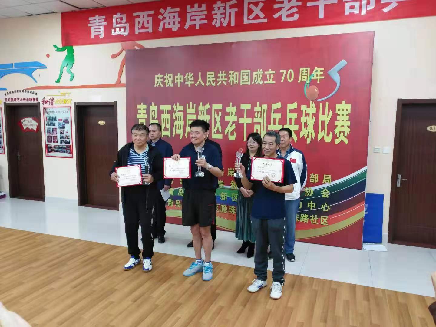 共舞小小银球话友谊 同庆七十华诞抒豪情。为庆祝中华人民共和国成立70周年,丰富老干部精神文化生活,提高西海岸新区老干部乒乓球水平,营造全区老干部积极投身乒乓球运动的良好氛围,展现老干部文化养老、健康养老的精神面貌。10月31日,由西海岸新区工委老干部局、区老干部协会举办的“青岛西海岸新区老干部乒乓球比赛”在隐珠街道双珠路社区拉开帷幕。