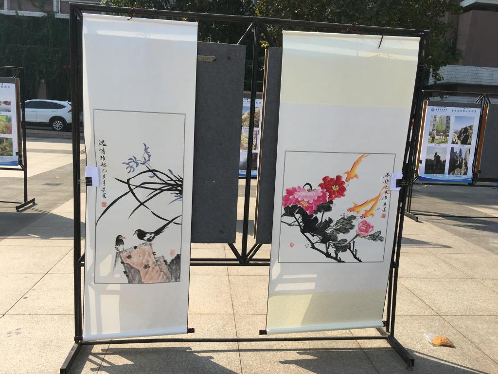 为庆祝新中国成立70周年,9月24日,由学校离退休工作处主办的离退休老同志大型书画摄影作品展在图书科技楼广场举行。26日在黄岛校区展出。